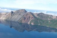 天池のすぐ南側に臥虎峰から 500m余り離れている冠冕峰(水面からの高さは 370.8m、海抜2,525m)が朝鮮半島と