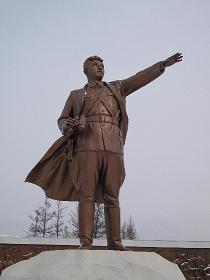 記念碑は、金日成の銅像、烽火塔と彫像の群から構成されます。金日成の銅像は白頭山の高原を背景に建てられ、
