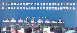 [経済] 延辺州第3回東北アジア博覧会総括表彰大会 延辺州第3回東北アジア博覧会条約プロジェクト締結及び総括表彰大会が 21日午前、延吉市白山ホテルで開かれた。 大会では今度の博覧会で延辺代表団がおさめた成果を高く評価し、今度の博覧会の計画実施事業で顕著な 貢献をした団体と個人を表彰した。延辺州副長・西門順基と各県(市)の指導者たちが各プロジェクト事業の 締結に関して責任書を締結した。 9月 6日、長春で閉幕した第3回東北アジア博覧会で、延辺州代表団は延辺州委、延辺州政府の正確な指導の下、 州全体各方面の共同の努力で各プロシェクトでの事業を円満に完成し、成果が大きかった。 今度の博覧会で延辺州は国際ブース 50個、国内ブース 54個を展示し、展示商品は食品、医薬、軽紡織、建築材、 木製品など 5分野の 800個余りの品目が含まれた。 博覧会の期間、延辺州は 17件の各項活動を展開、参加し、延辺代表団が締結したプロジェクトのうち投資総額 が 1億元を超えるものが 24件で、プロジェクト全体の 77.4%を占め、そのうち 10億元以上のプロジェクトが 6件である。 延辺州各県市でそれぞれにいろいろな成果をおさめ、東北アジア博覧会の商談で敦化市、安図県、汪清県の資源 の強みと琿春市、図們市、和龍市の地域の強みが目立った。 概算によれば、博覧会期間、延辺州の企業で締結した契約締結額は約 4500万ドルだ。 (吉林新聞 2007年9月21日)