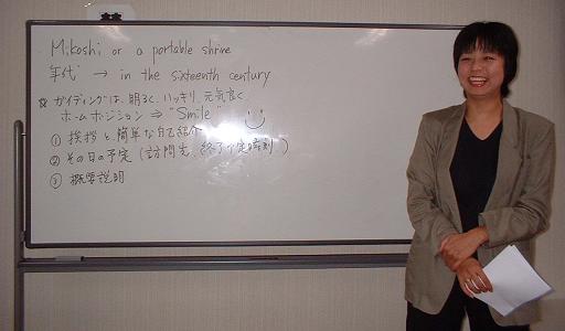 今回はグループに分かれて、英語ガイダンスの練習をしました。
