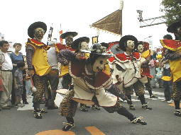 喜怒哀楽を表現したといわれる仮面をそれぞれにかぶります。