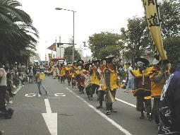 現在の唐人踊りの行列の構成は、町印の車を先頭にして、大旗(昇り龍)、清道旗、ラッパ2、踊り、笛2、鉦(かね)2、